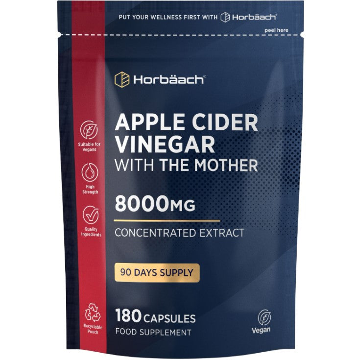 Step up your daily nutrition with Horbaach Apple Cider Vinegar. This innovative formula delivers 8000mg of Apple Cider Vinegar powder in an easy-to-swallow capsules. Take two (2) capsules morning or night time with a drink of your choice and reap the benefits of this natural supplement!