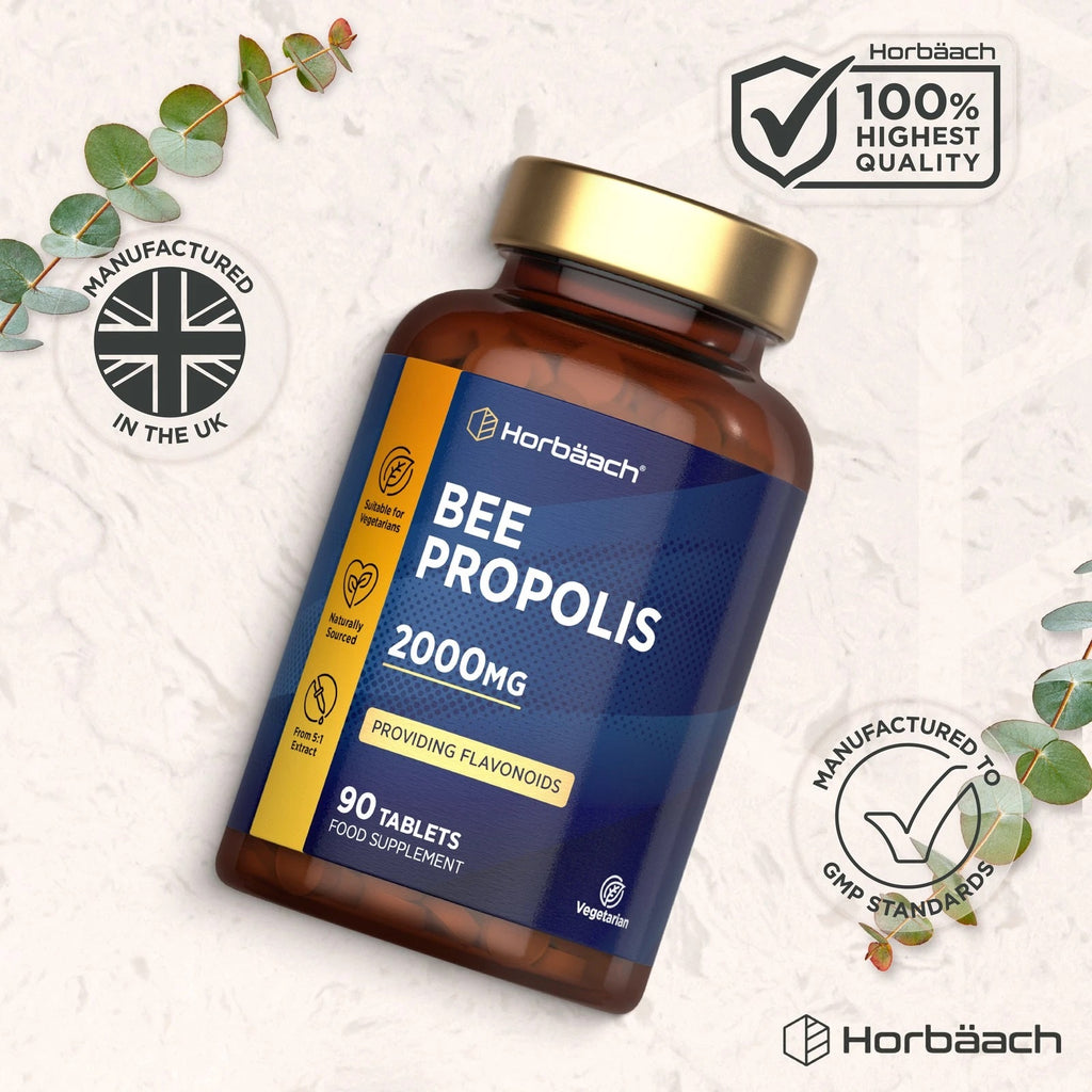 Horbaach Bee Propolis has been made for your convenience. This 2000mg supplement harnesses the health benefits of bee propolis in an easy to take tablet. Taking just 2 tablets per day provides the natural power of bee propols to boost your health.