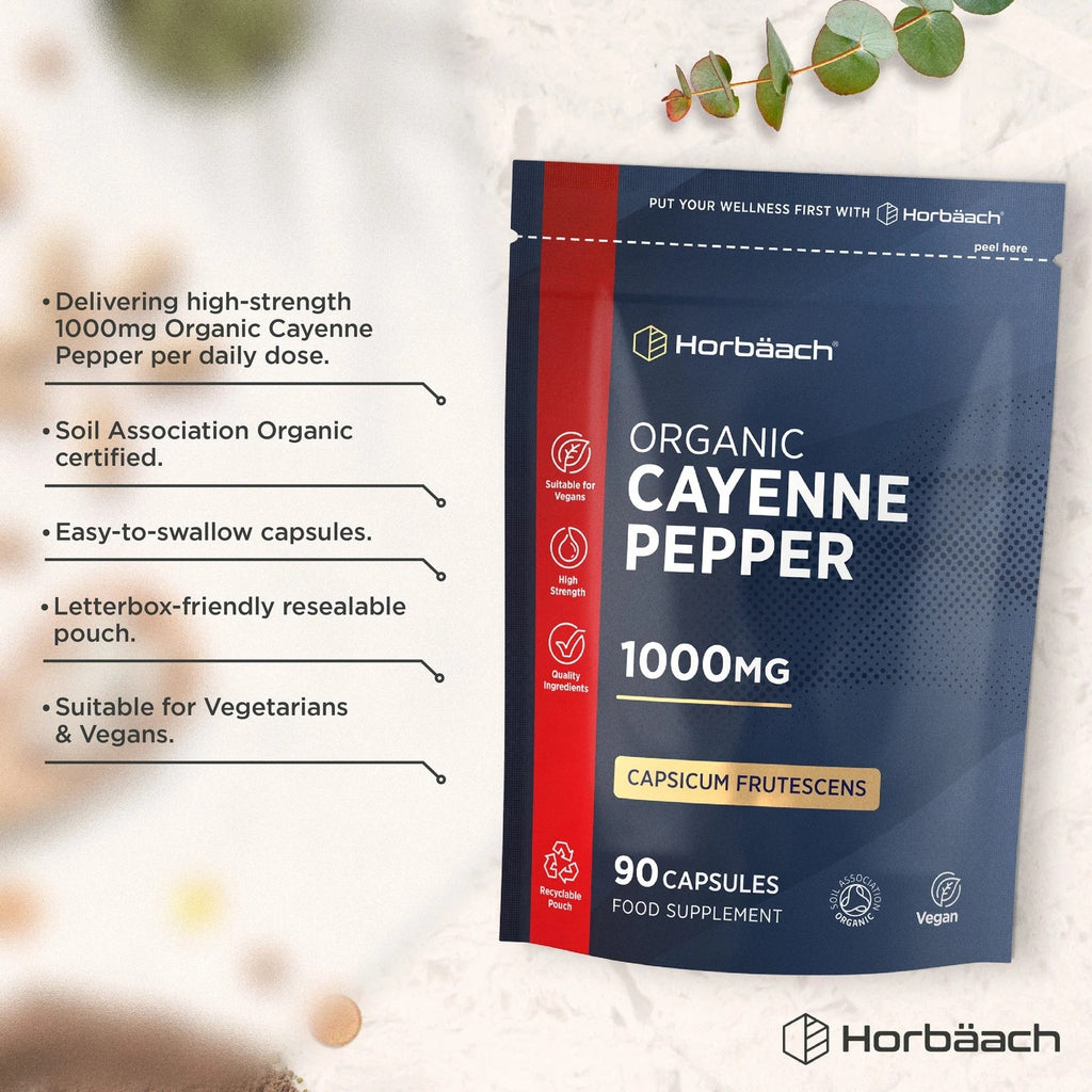 Step up your daily nutrition with Horbaach Organic Cayenne Pepper. This innovative formula delivers 1000mg Organic Cayenne Fruit Powder per daily dose in convenient and easy-to-swallow capsules. Add this essential to your diet by simply taking two (2) capsules morning or night with a drink of your choice and reap the benefits of this natural supplement for 1+ months.