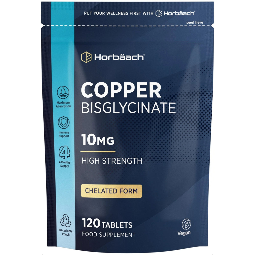 Horbaach Copper: Step up your daily nutrition with Horbaach Chelated Copper. This innovative formula delivers 10mg Copper per tablet! Simply take one (1) tablet daily and reap the benefits of this supplement for over 4 months!