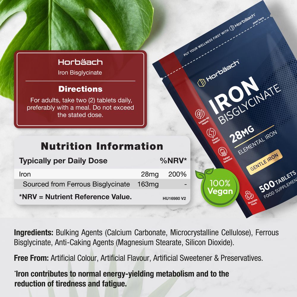 Step up your daily nutrition with Horbaach Iron. Our advanced formula provides 28 mg of iron per daily serving, delivered in a gentle, bioavailable form designed for optimal absorption. Each easy-to-swallow tablet offers a convenient way to meet your daily needs—simply take two (2) tablets with water.