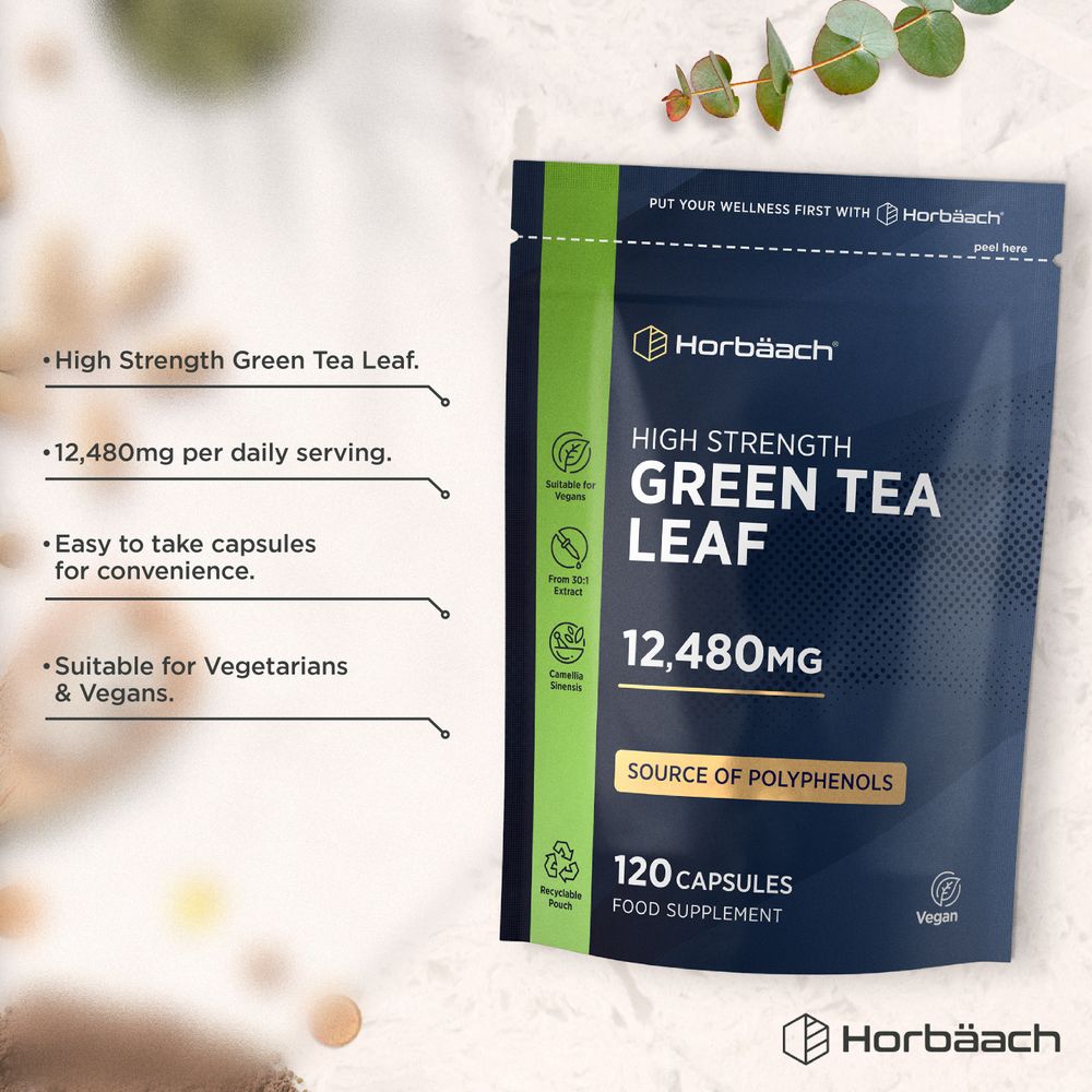 Step up your daily routine with Horbaach Green Tea. This expertly crafted formula delivers the equivalent of 12,480mg of Green Tea per daily serving. Convenient and easy to take - simply enjoy two capsules daily with a drink as part of your wellness routine.