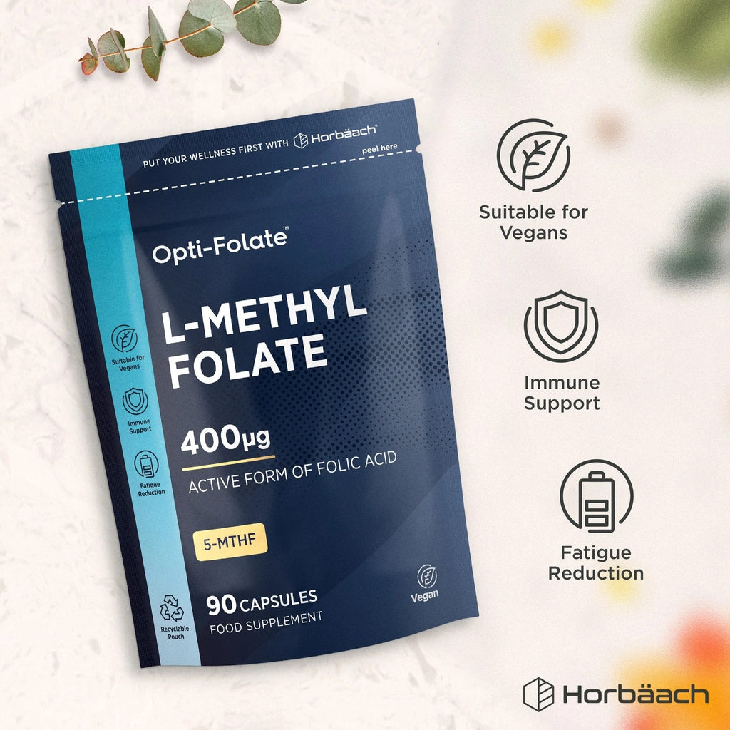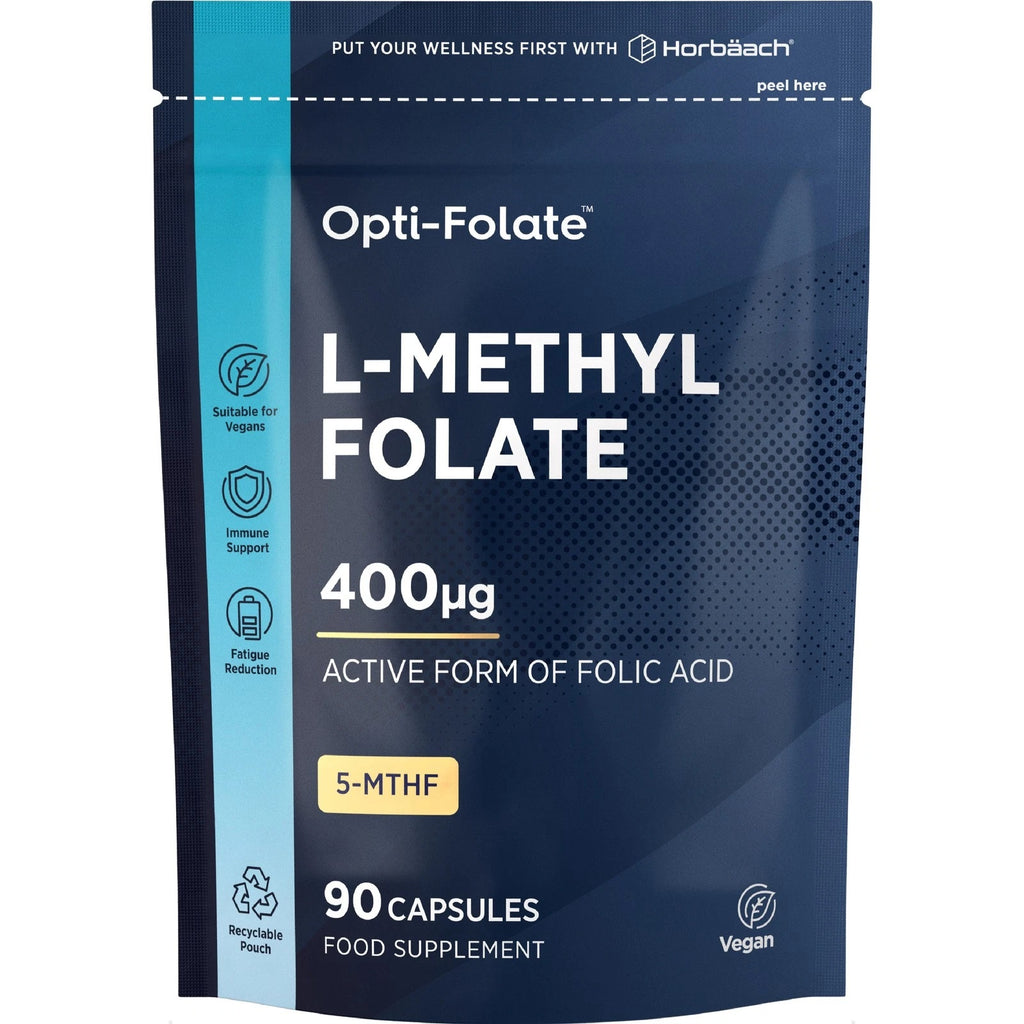 Step up your daily nutrition with Horbaach L-Methylfolate. This innovative formula delivers 400ug of Folic Acid (L-Methylfolate) per daily serving in easy-to-swallow capsules. No need to re-order every month, our one-a-day formula will provide you with daily support for 3+ months.
