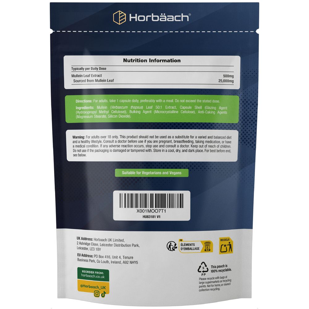Step up your daily nutrition with Horbaach Mullein Leaf. This innovative formula delivers 500mg of Mullein Leaf Extract sourced from 25,000mg of Mullein Leaf. Just take one capsule daily — it’s that simple. And with 60 servings per pouch, you’ll enjoy a full 2-month supply without the hassle of constant reordering.