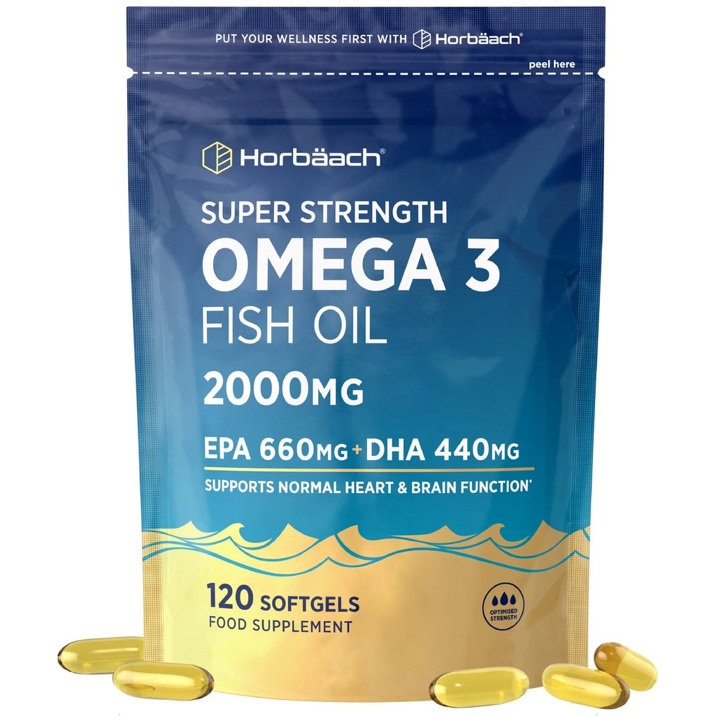 Step up your daily nutrition with Horbaach Omega 3 Fish Oil. This innovative formula delivers a high strength 2000mg of premium Fish Oil, delivering a powerful dose of EPA & DHA for optimal absorption and superior benefits.